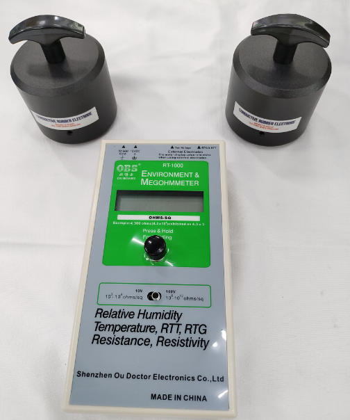 RT-1000重锤式表面电阻测试仪用途: RT-1000重锤式表面电阻测试仪主要用于检测防静电工作椅、防静电工作服、防静电地板、防静电桌垫的电阻特性,以及点对点、点对地的电阻,是一个全方位全功能的仪器,品质高,测量数据精准,且操作简易,被广泛应用于电子、防护、维护、医疗、摄影、印刷等需要测量温度、湿度及电子系数的产业。 RT-1000重锤式阻抗测试仪优势: 1.能测量物体的表面电阻,并且能实时监测并显示测试环境的温度和湿度