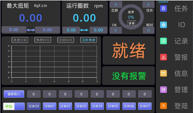 1.传感器式智能螺丝刀锁付工程中可多段编程、多端扭力设置、多端转速、圈数设置。 2.满足高端锁付工艺,如牙阶段可以快速拧入,也可以拧紧后退几圈在快速锁入。 3.支持多种任务管理编程,可以满足各种螺丝、扭矩,要求自由切换。 4.拧紧结果显示数据扭矩、圈数、波形记录、扭力曲线图,锁付结果可追溯、导出、保存、查询可以上传MES系统。 5.支持RS232/485MOdbusrtu通信协议,扩张性强,支持多种IO输入/输出,可订制TCP/IP网口。 6.配合扫码枪使用,监控圈数和角度、识别漏打、歪打、符锁等不良 7.可以配合欧博士ESD静电软件系统使用,所有数据上传保存到欧博士ESD静电系统数据库,随时可以查找,欧博士ESD软件可以开放对接MES系统